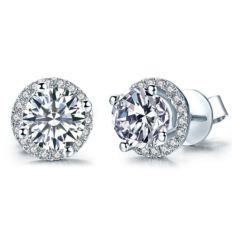 At the centre of the earrings you'll find a brilliant diamante stone, surrounded by smaller diamante stones. This is Diamond coloured, with silver diamantes around the edge.