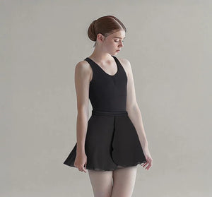 This elegant dance wrap skirt is crafted from lightweight georgette fabric, perfect for effortless movement and flow during performances. The narrow tie band ensures a secure and adjustable fit and is perfect class or exams.