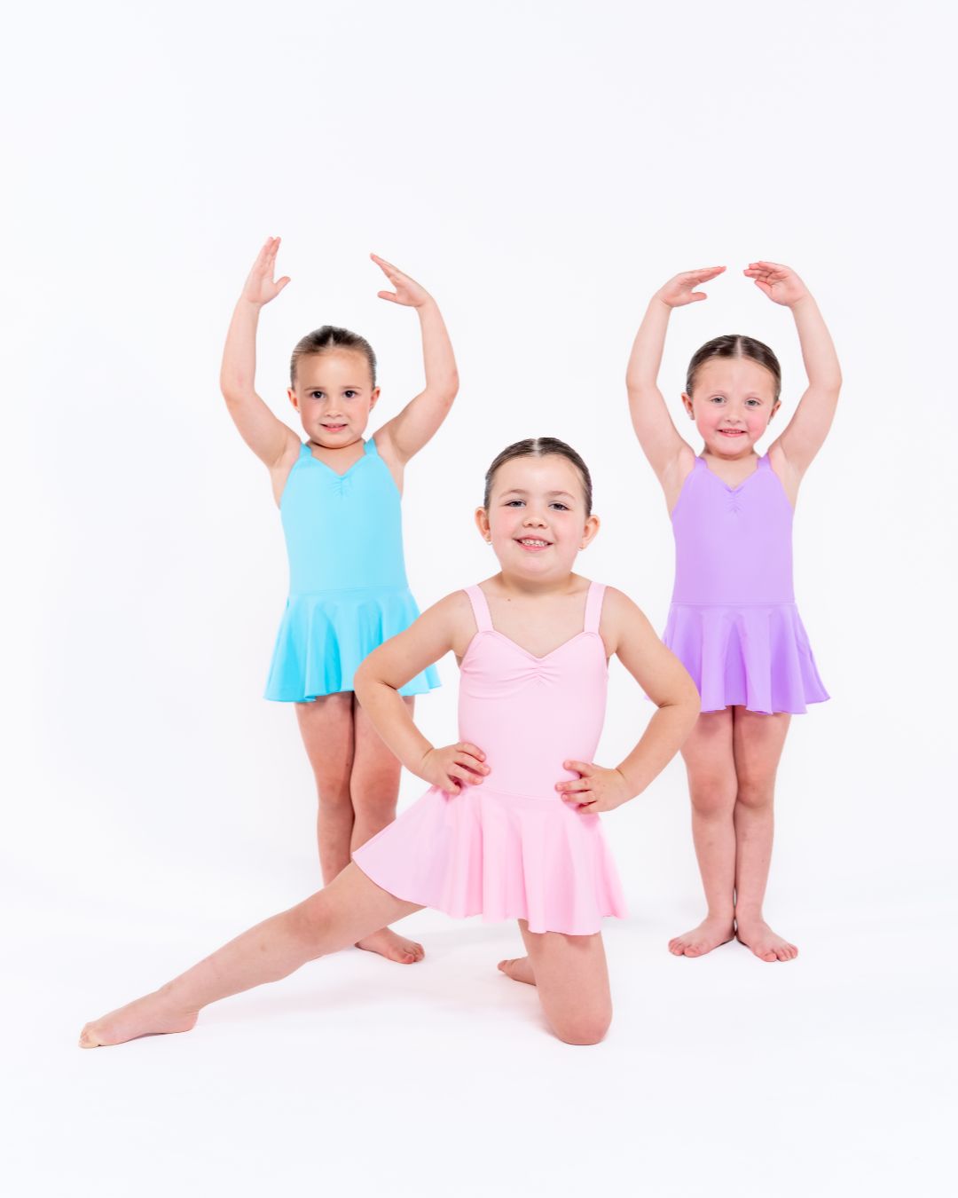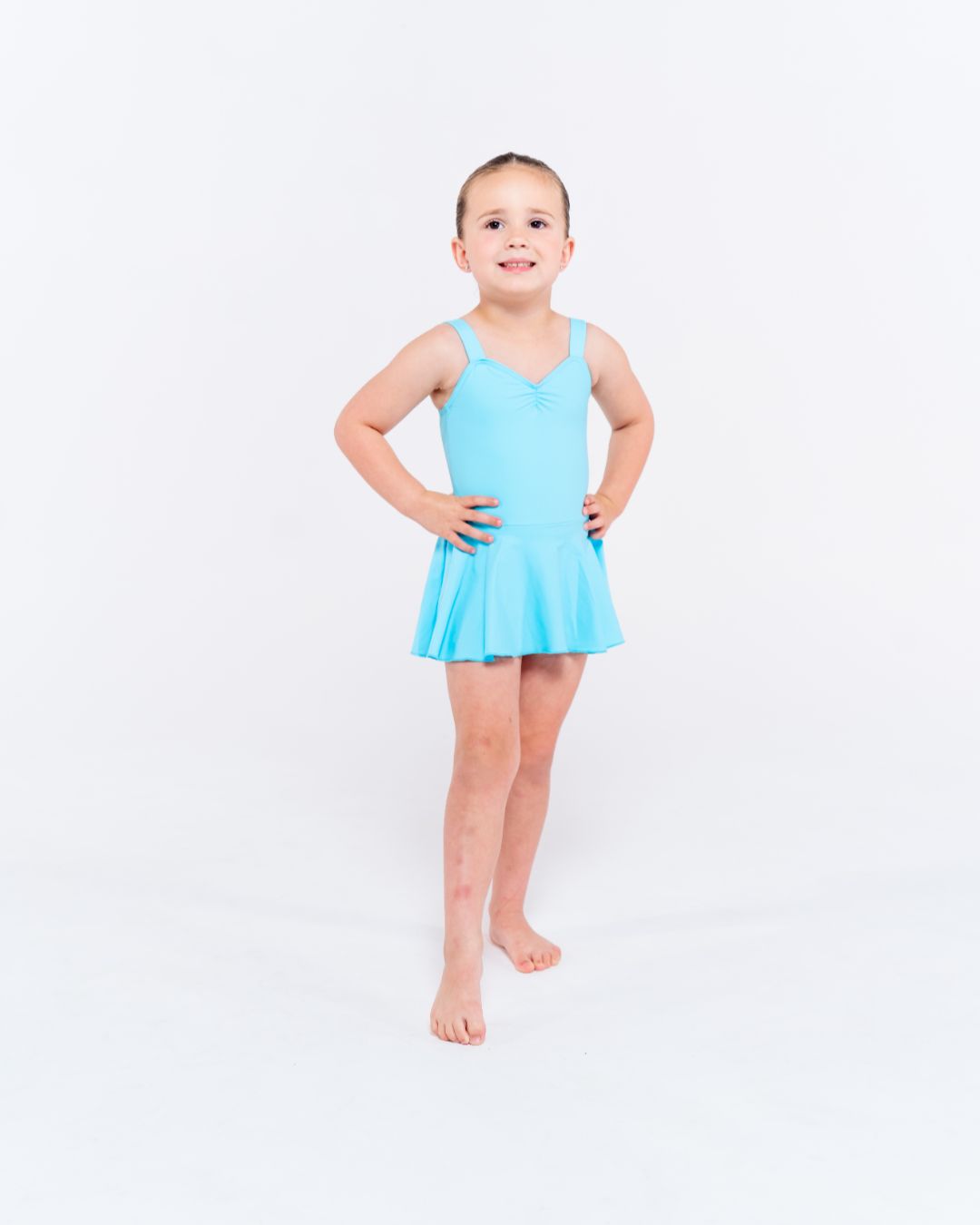 Watch your little dancer shine in the Ava Wide Strap Leotard with Skirt – thoughtfully designed for comfort, confidence, and graceful movement.