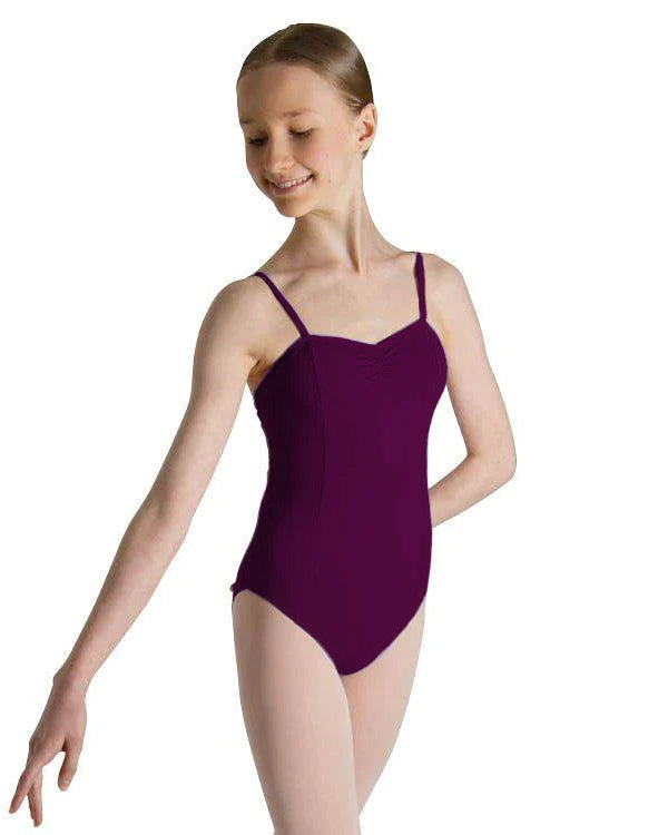 A camisole style leotard with a low scoop back has a gathered, sweetheart neckline with front princess seams which flatters the body and gives shape to the garment. The leotard is crafted in our beautiful Microlux fabric with it's high performance wicking properties which help to draw moisture away from the body and keep you cool.