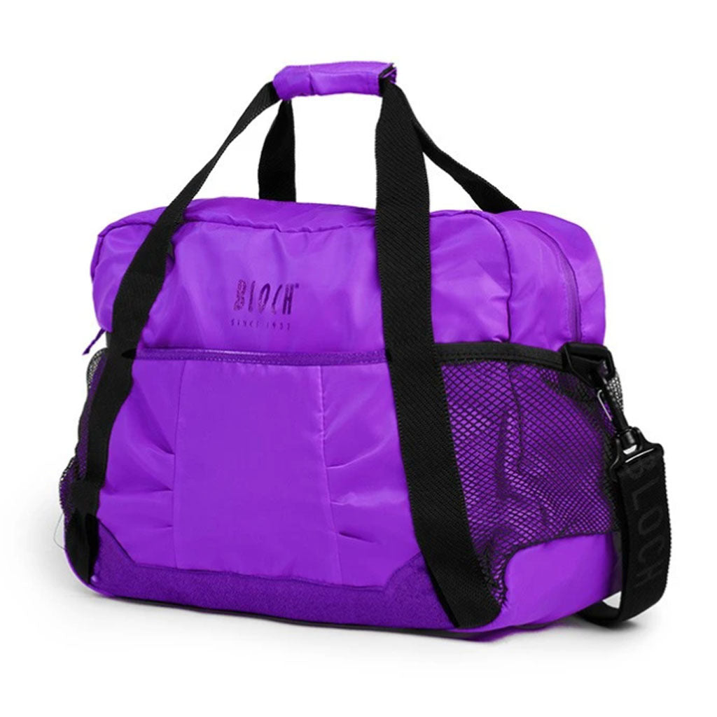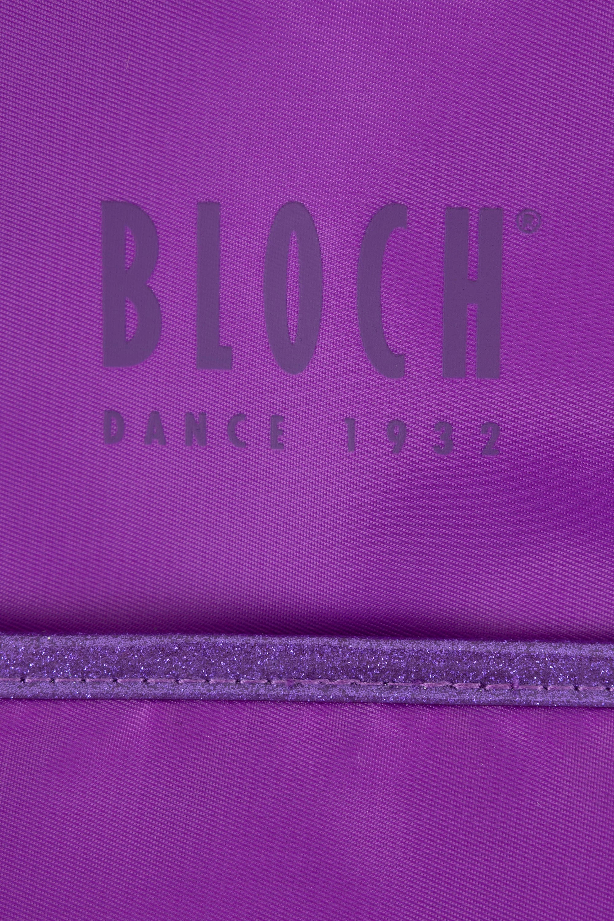 Features; Deep mesh pockets are located on either end of the bag with an elasticated top to keep your drink bottle and belongings firmly in place. Dual hand held straps allow for an easy and quick carry, with the option of an adjustable Bloch branded shoulder strap which can also be worn across the body. The fabric of the bag has a subtle sheen, contrasted with the bold straps and sparkly faux glitter trim and Bloch logo on the front of the bag. Studded feet are positioned on the underside of the bag, for extra protection when the bag is placed on the floor.