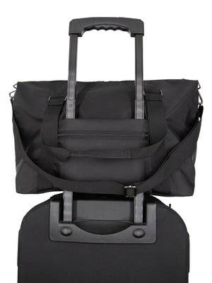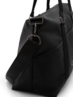 The Casey Carry-All Duffle Bag is the perfect accessory for dancers on the go. Made from 100% polyester, this duffle bag is built to last. The zipper closure ensures that your belongings stay safe and secure, while the two outer pockets provide additional storage space for smaller items. The adjustable and removable crossbody strap allows for comfortable and customizable carrying with tote shoulder straps that provide an additional carrying option. The tonal Capezio logo adds a touch of style, making it the perfect accessory to take with you to dance class or on the go. It also features an outer back luggage sleeve that makes it easy to attach the bag to a larger piece of luggage, making it the ideal travel companion. Whether you're headed to dance class or traveling to a performance, the Casey Carry-All Duffle Bag has got you covered!