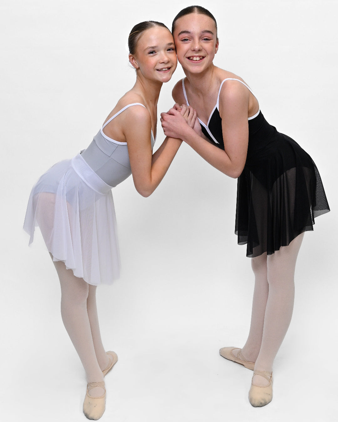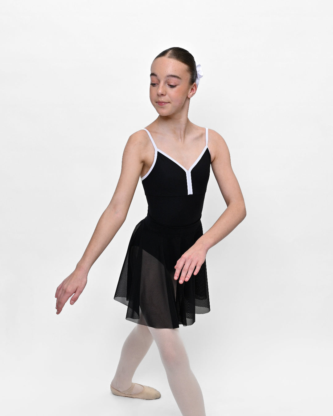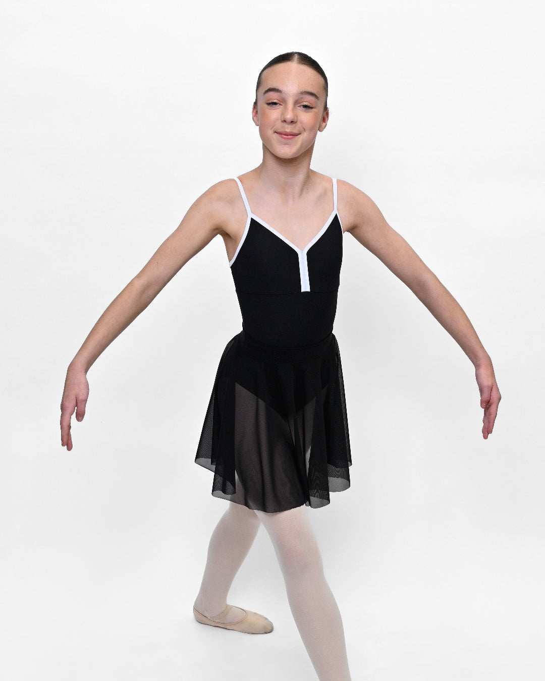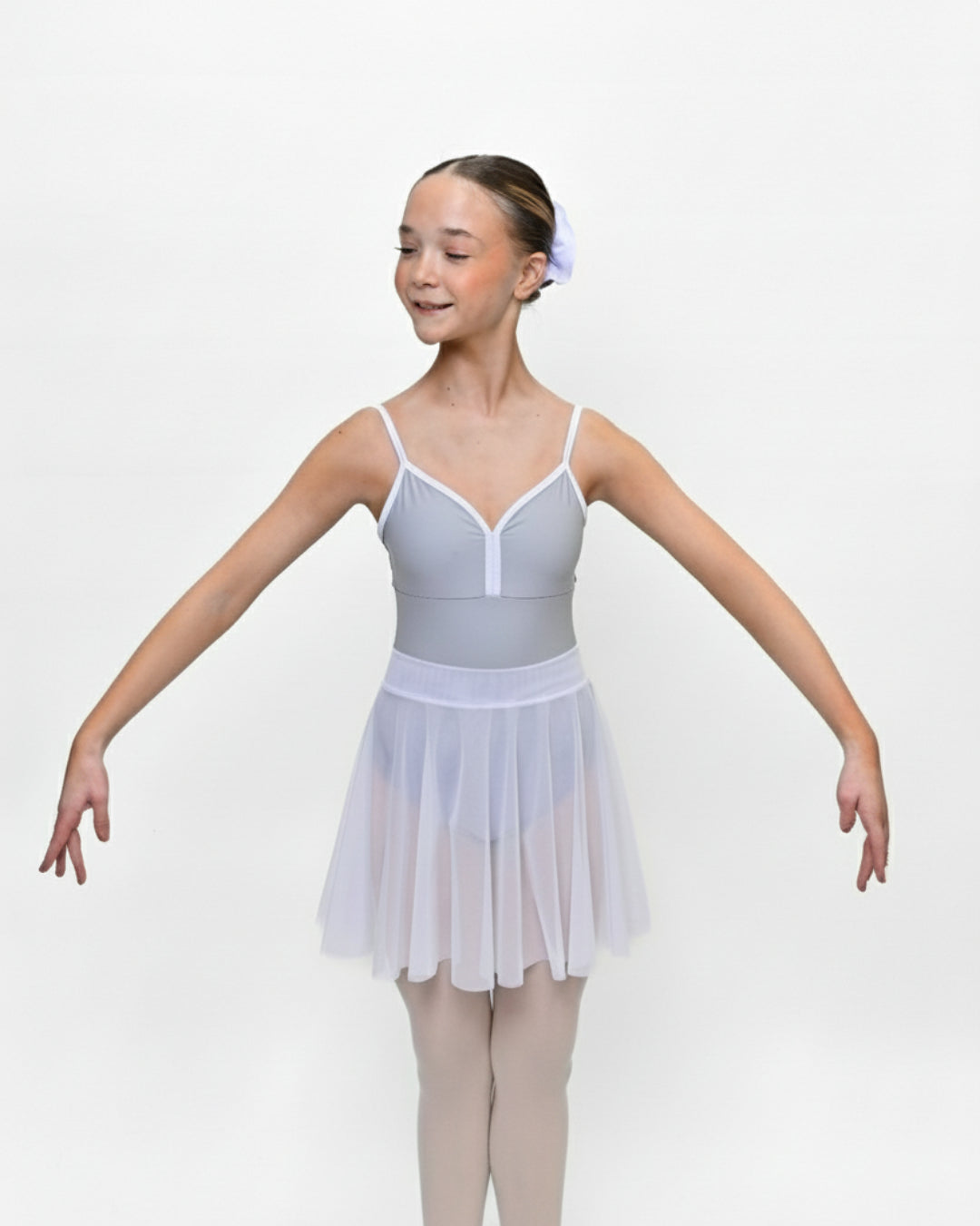 Whether you're practicing at the barre or performing on stage, this versatile mesh skirt with its elegant mesh band moves beautifully with every step, making it an essential addition to any dancer's collection.