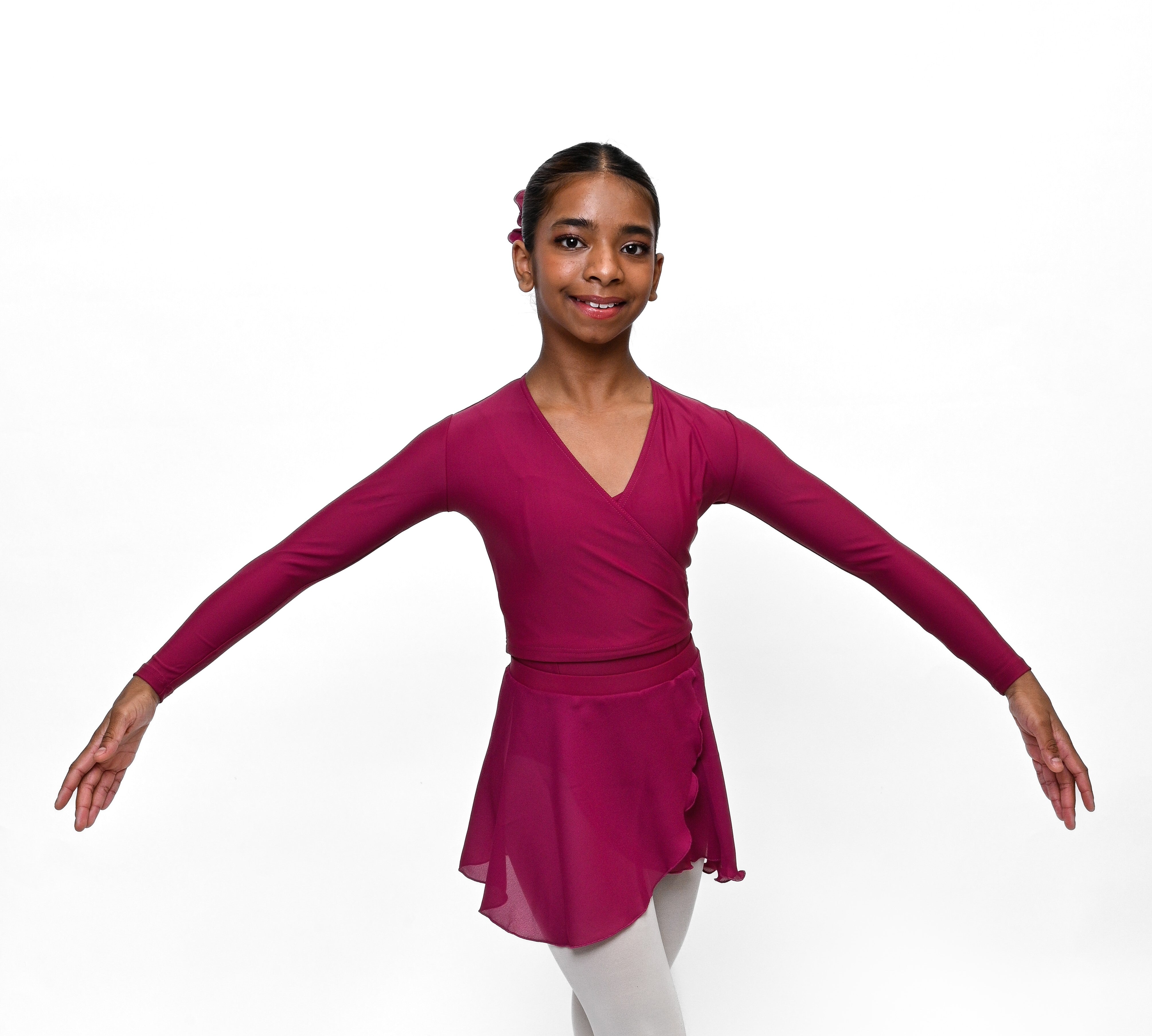 Perfect for young dancers, our Child's Pull-On Crossover gives the classic ballet wrap look without the hassle of ties. The slip-on design makes it easy for little ones to wear on their own, while the soft, stretchy fabric keeps them warm and comfortable in class or rehearsal.