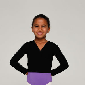 Our Dance Crossover is a timeless ballet essential with a wrap-front design and a tie-up back for an adjustable fit. Crafted from soft, breathable fabric, it layers perfectly over leotards to keep dancers warm and comfortable in class, rehearsal, or warm-ups without restricting movement.