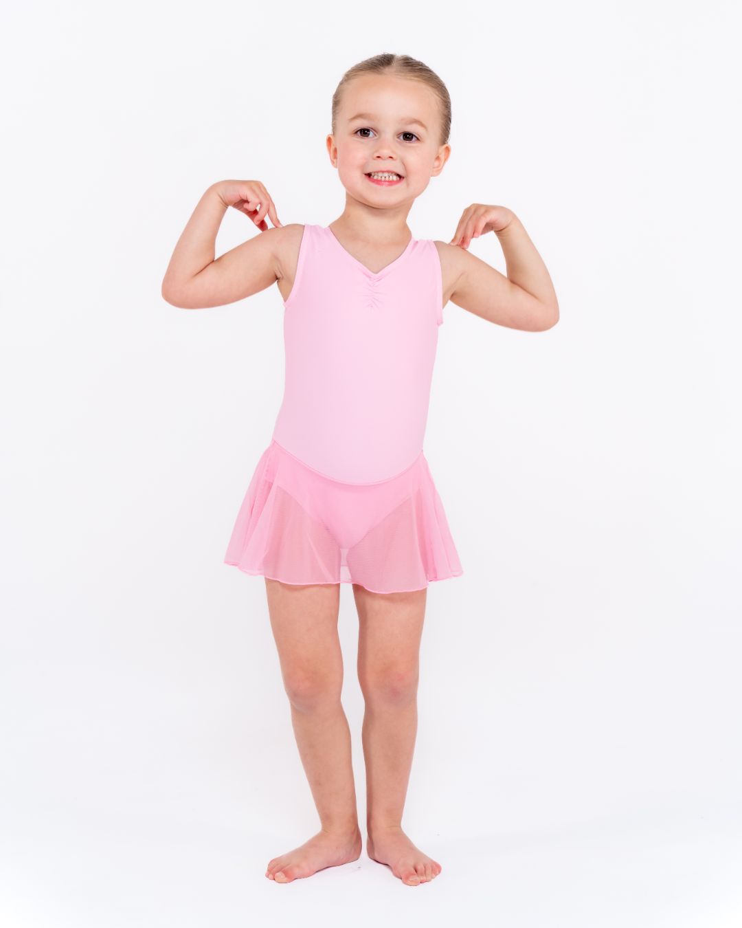 The Gisele showcases a sophisticated gathered front detail that creates a flattering silhouette, while the attached skirt adds graceful movement and traditional ballet charm. This thoughtful design ensures you look and feel your best in every class and performance.