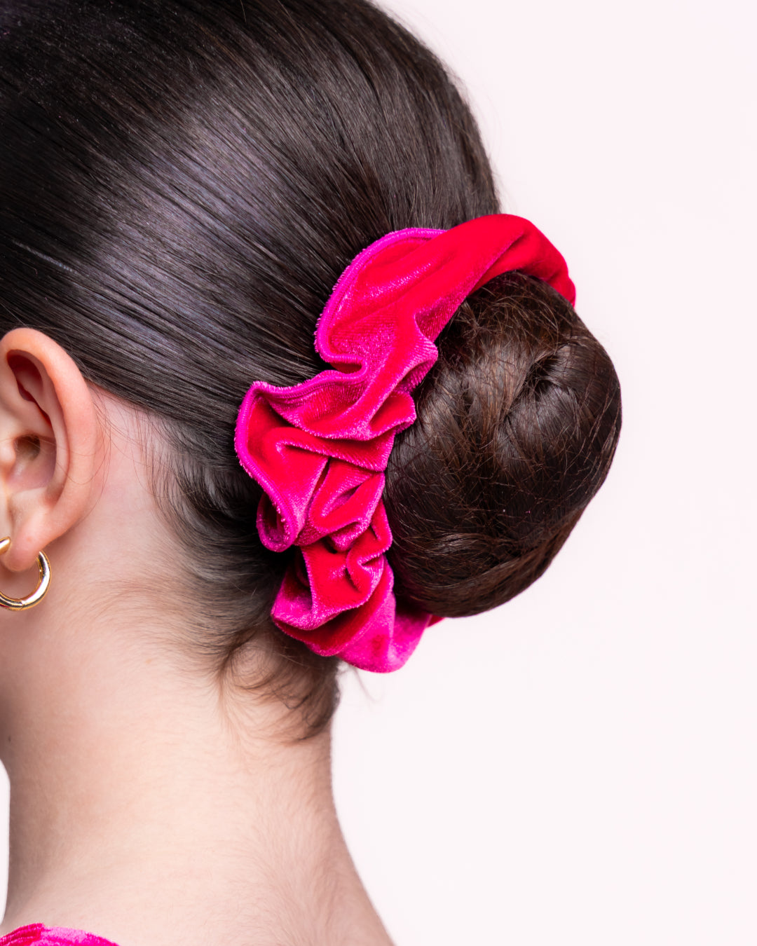 Keep your hair perfectly in place with this soft velvet scrunchie. The gentle fabric won't tug or damage your hair, making it ideal for dancers, gymnasts, and everyday wear. Available in vibrant colours to match your favourite dancewear!