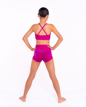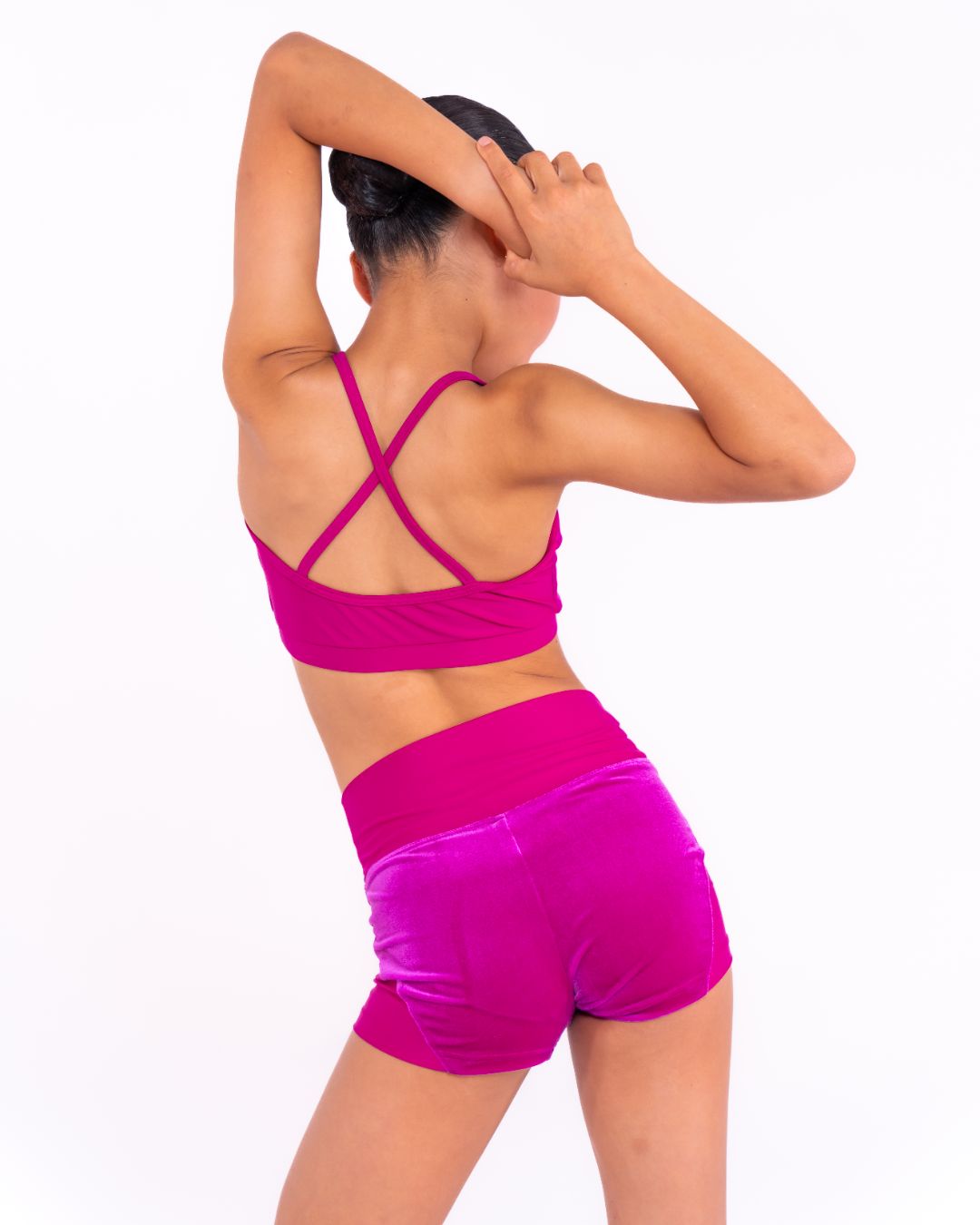 Bring a burst of colour to every practice with this stunning crop top. The simple V-neck front is crafted from super soft velvet that feels luxurious against your skin, while slim cross-back straps made from eco lycra provide a sleek, supportive fit that moves with you.