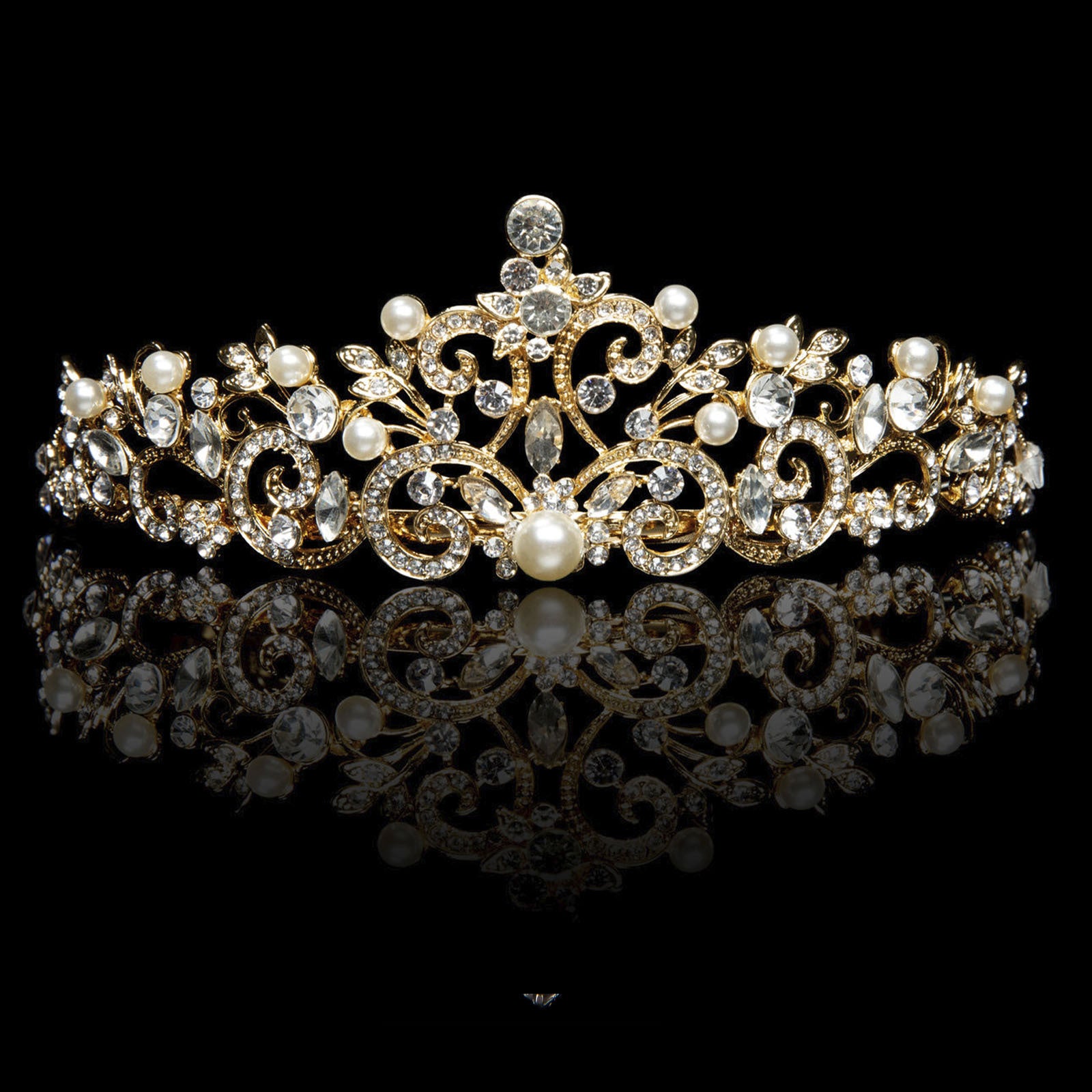 This grand and luxurious tiara is perfect for making a statement on stage; embellished with pearls and diamantes.