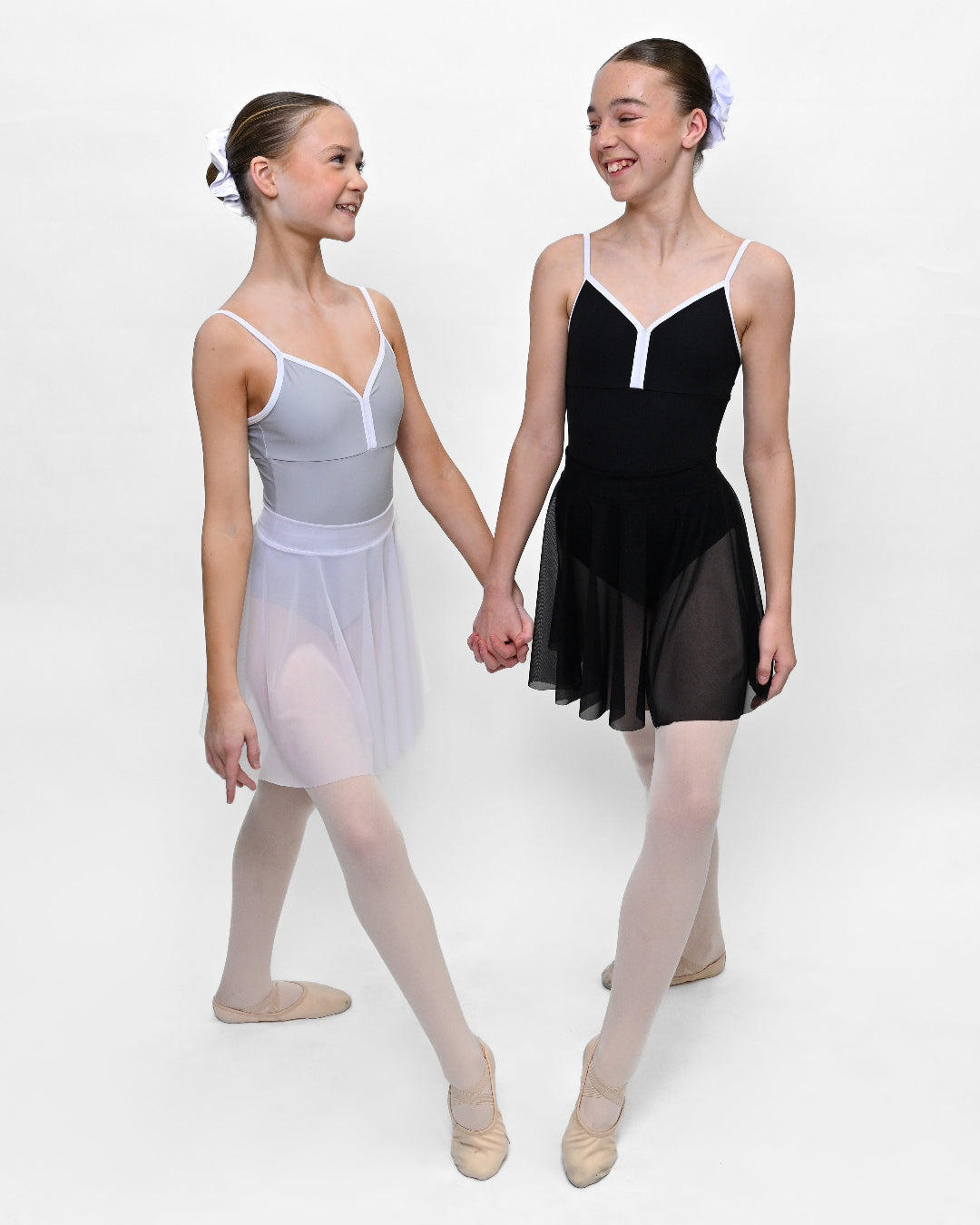Stand out with style in the elegant Lillian Leotard, designed with a flattering V-shaped neckline and striking centre insert detail. The contrast trim highlights the neckline and straps, giving a modern edge to a classic silhouette that's perfect for dancers who want to make a statement in class or on stage.