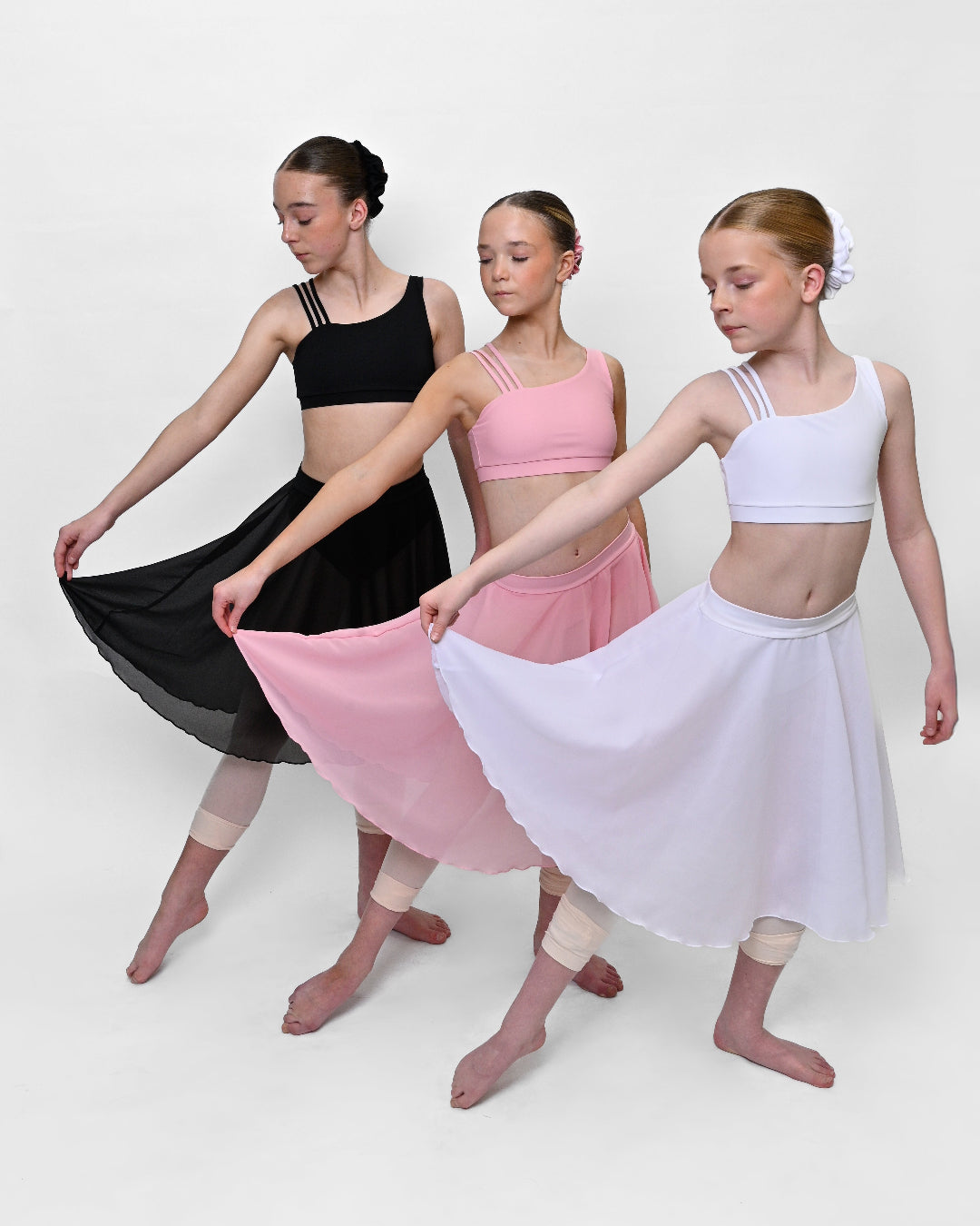 Elevate your dance performance with the Mastery Skirt, a beautifully designed full circle skirt crafted from premium Hi Multi Chiffon fabric. This professional-grade dancewear combines elegance with functionality, featuring attached performance dance briefs and a comfortable narrow waistband for secure, confident movement.