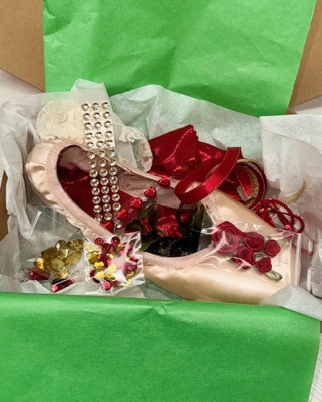 1x Pointe Shoe with a variety of glitter, ribbon, sequins & accessories to decorate the shoe