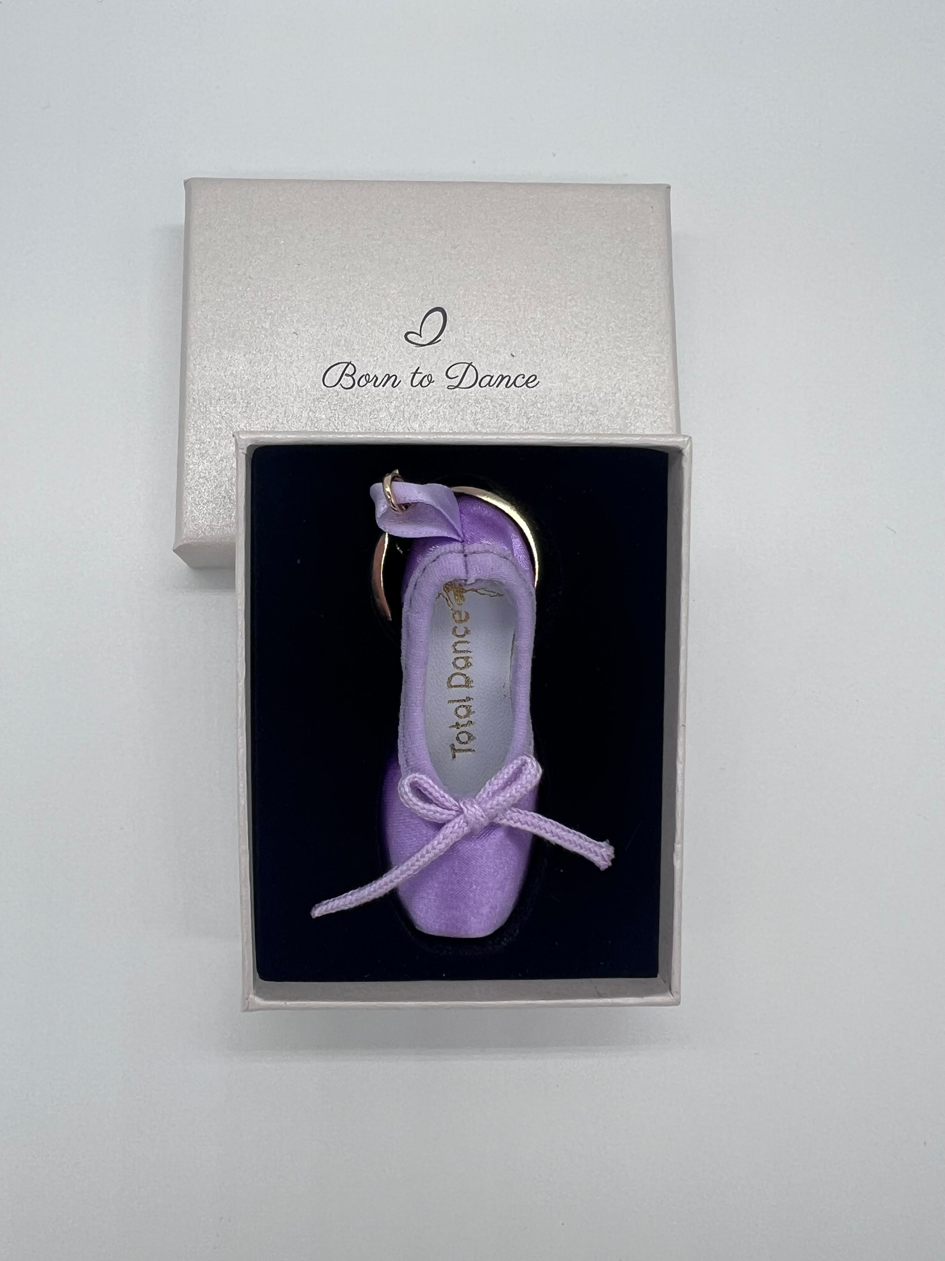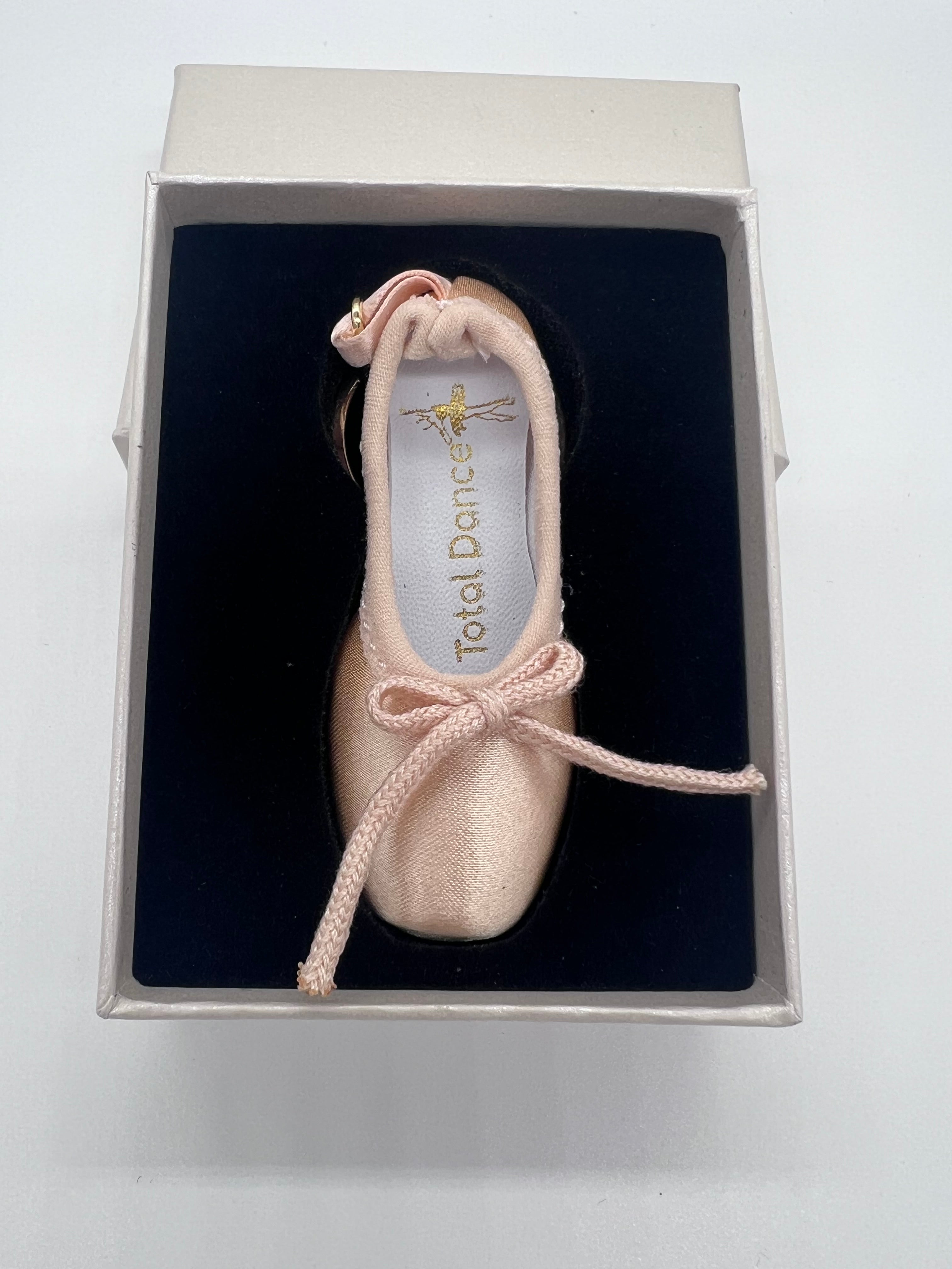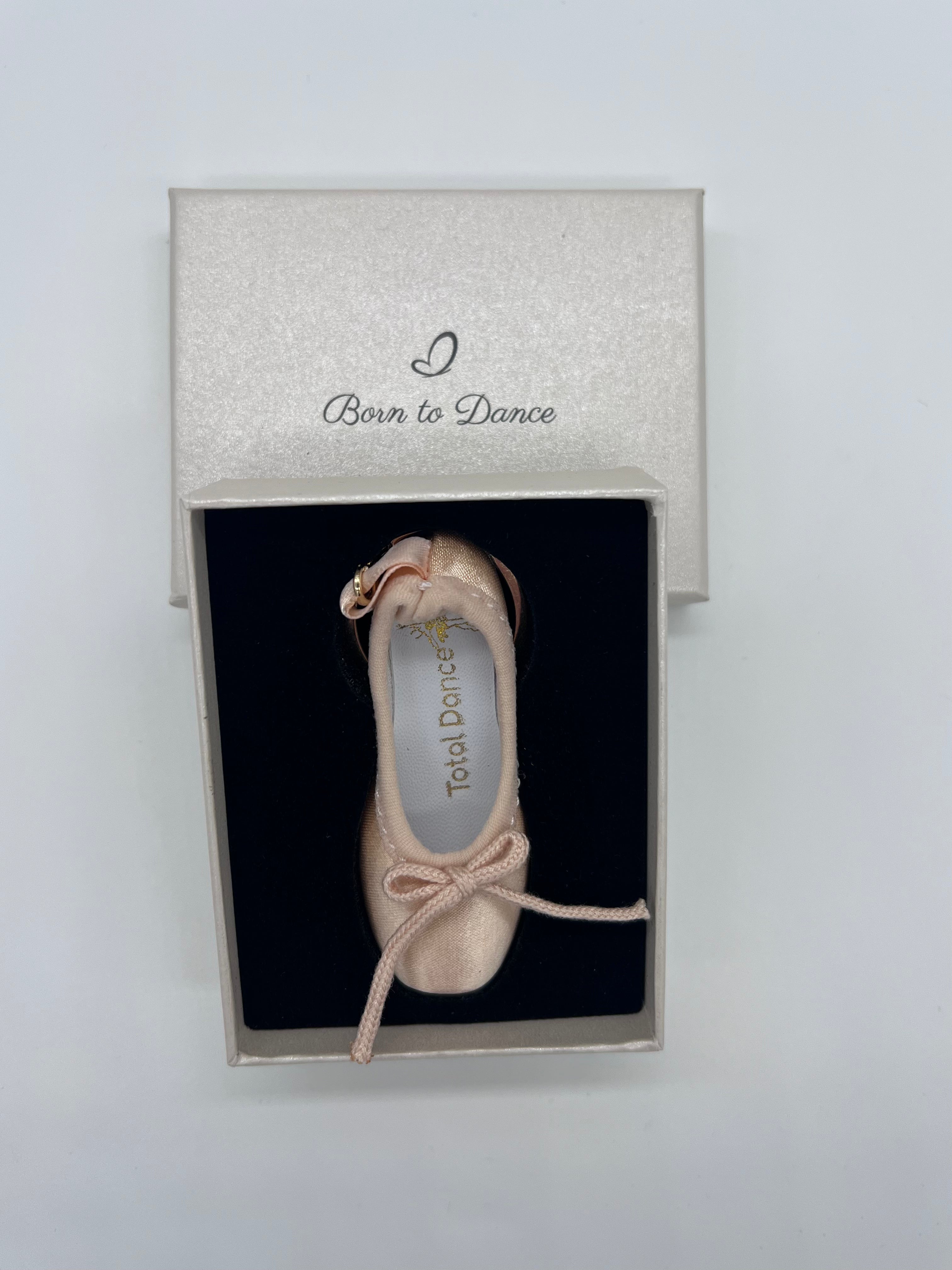 Crafted with a delicate satin finish and finished with a classic bow, this miniature pointe shoe captures the beauty of ballet in every detail. Presented in an elegant Born to Dance gift box, it's the ideal gift for dance recitals, milestone moments, or a ballerina’s first steps en pointe.