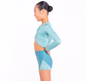Designed to complement our Shimmer Crop and Cami Leotard, this long-sleeved crop top offers the perfect balance of coverage and style. Whether you're warming up, performing, or simply want to add extra flair to your dance ensemble, this crop top delivers.