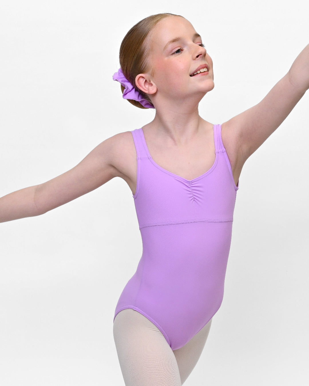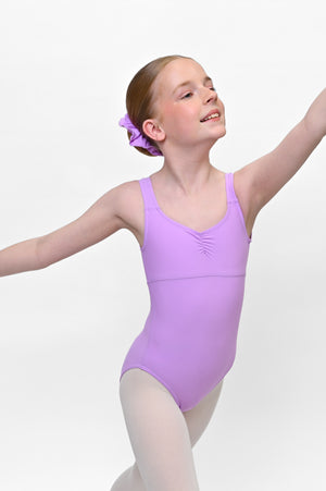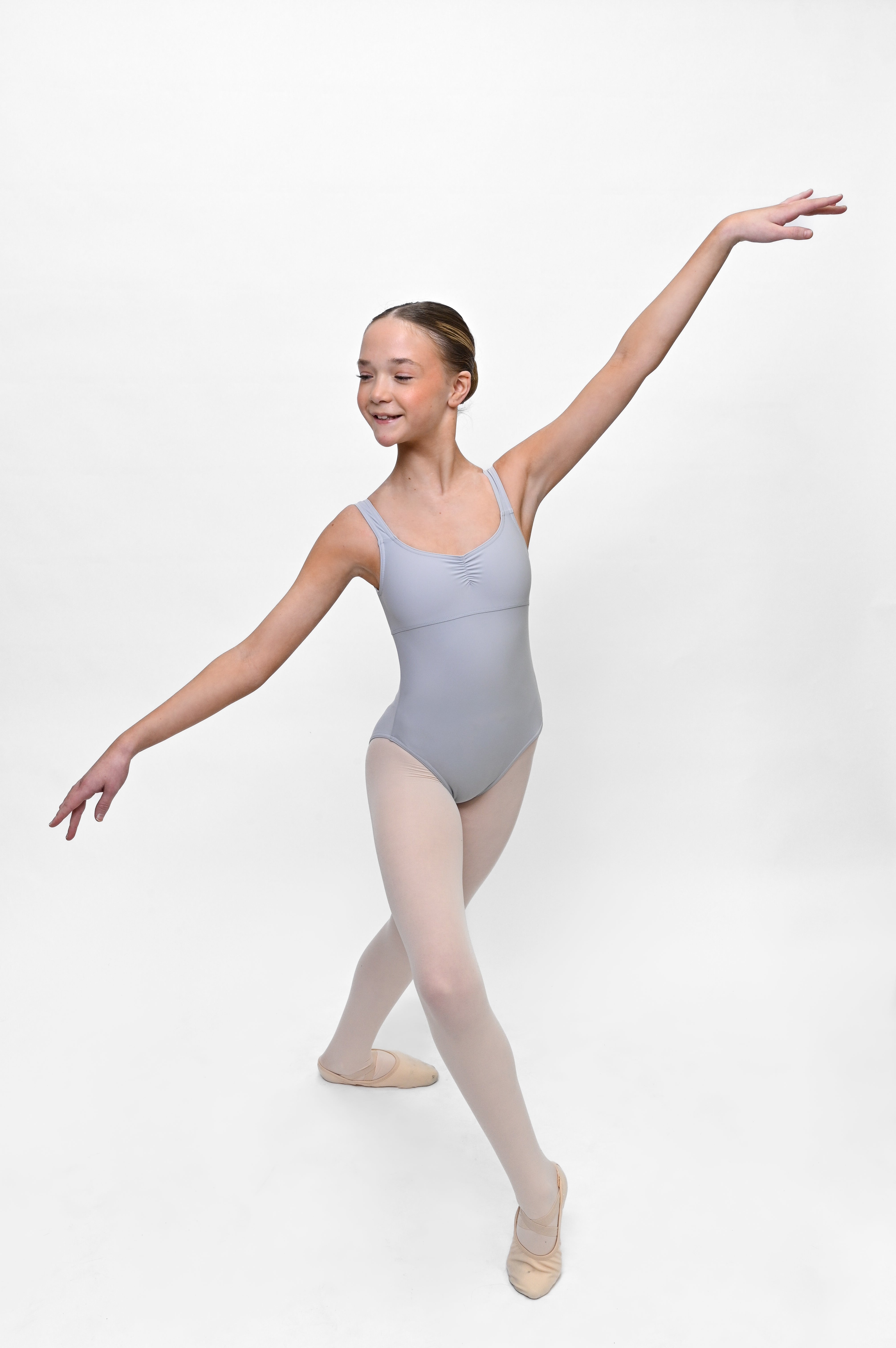 Elegant and timeless, this leotard features a soft gathered neckline and a flattering empire seam that enhances the natural line of the body. The wide straps provide comfort and support, while the classic scoop back allows full freedom of movement. Crafted from premium stretch fabric, it offers a sleek fit and durability for training, rehearsals, and performance.