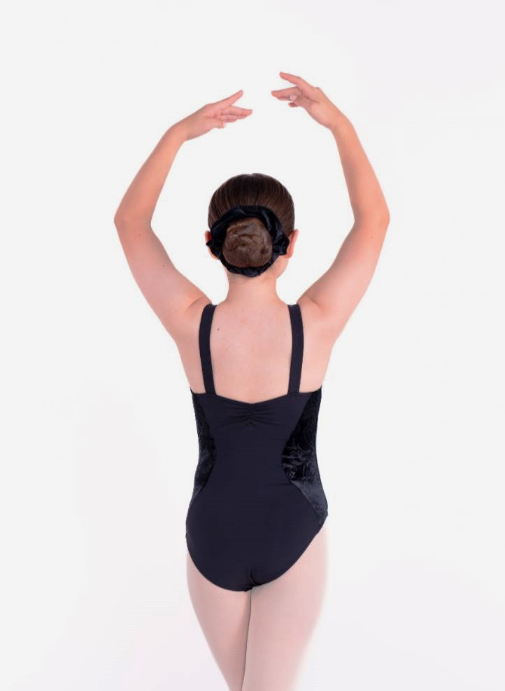 The Verona Leotard is where sophistication meets style. Featuring embossed velvet side panels that sculpt and flatter, this design is finished with a soft gathered front and wide supportive straps. The smooth lycra base ensures all day comfort and freedom of movement, while the classic cut offers a timeless silhouette.
